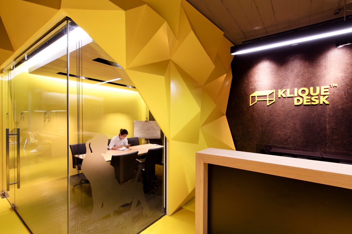 KliqueDesk 這個共享工作空間地方寬敞, 室內設計時尚, 主色調是黃色配黑色,設計極具時代感又充滿energy。距離BTS Asok 站只是幾分鐘的路程而且租約彈性、設施齊全、工作環境優質又舒適。簡直一流!